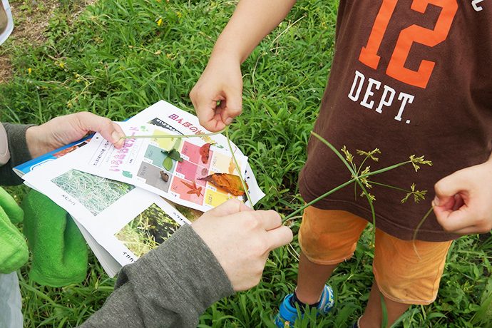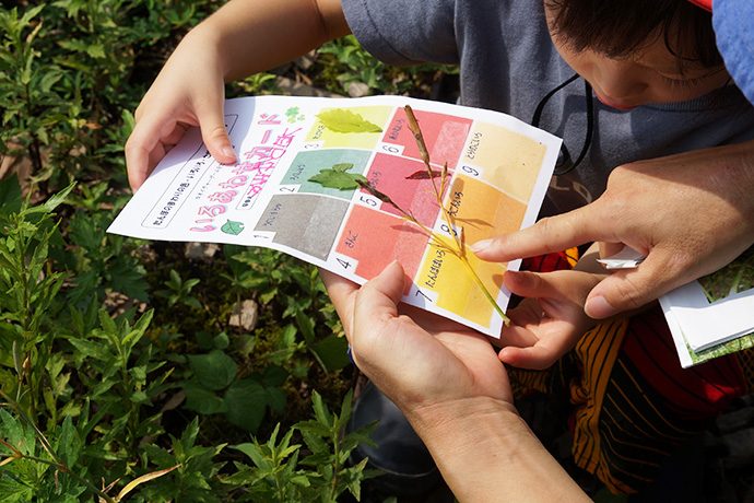 今回の植物観察のために、講師の方々が自然に親しめる内容をいろいろ考えてきてくださいました。