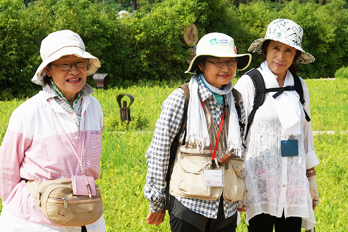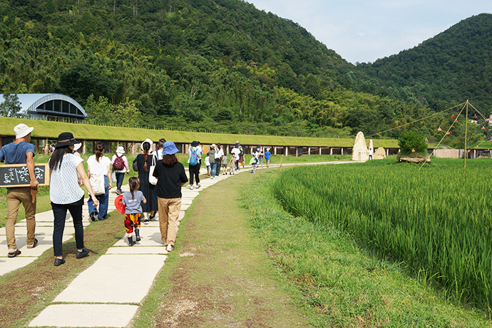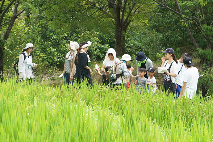 メインショップを抜けて、田んぼから農藝へと抜けていきます。稲が生育し青々とした田んぼの様子に「育ってきたね」という会話が聞こえてきます。