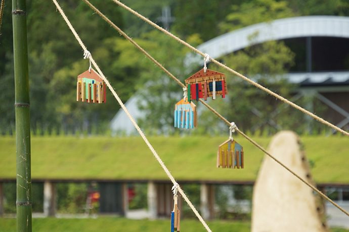 棚田には前回みんなが仕上げた鳴子も設置されています。