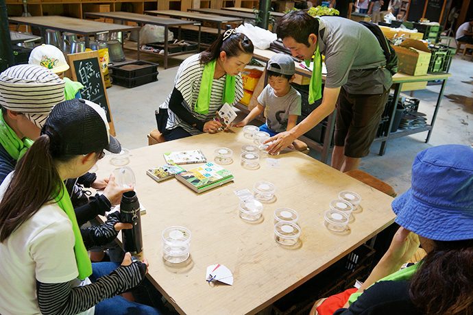 先生から昆虫の目や羽の数はいくつでしょう?というクイズがあったり、地球上で一番繁栄しているのは昆虫なんですよ、というお話を聞いて子どもも大人も先生のお話に聞き入っていました。