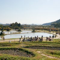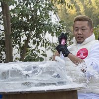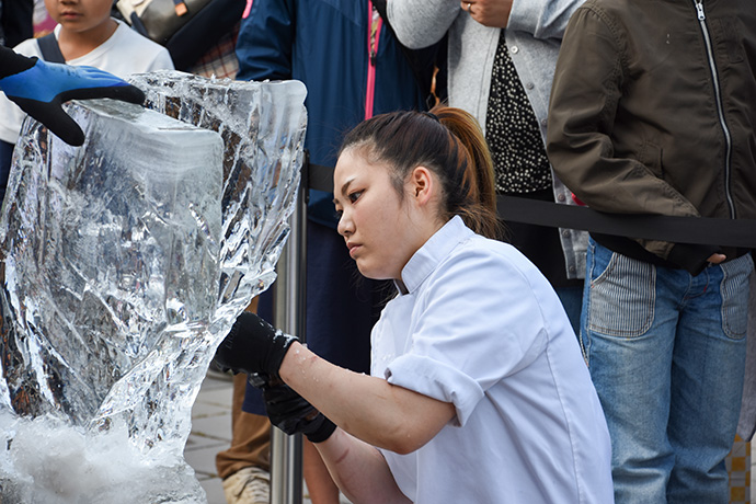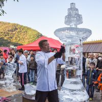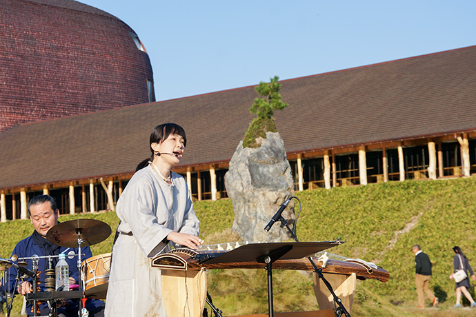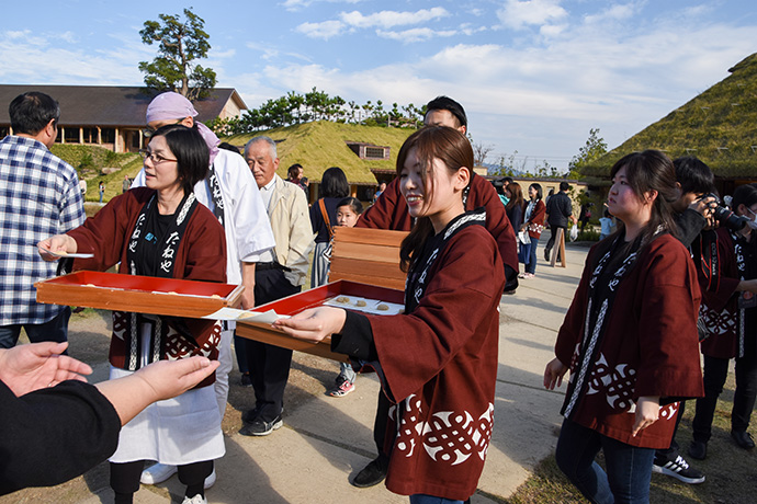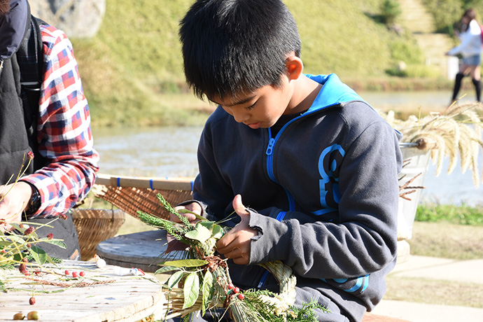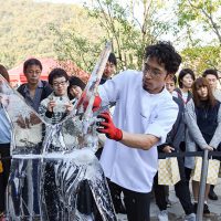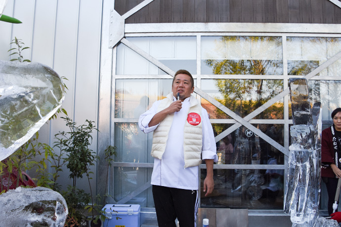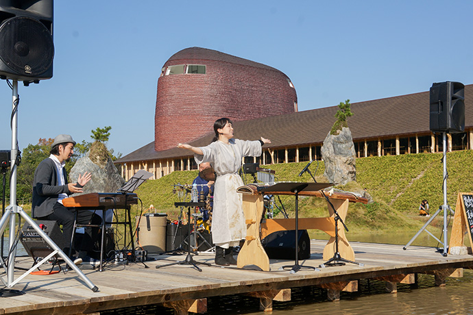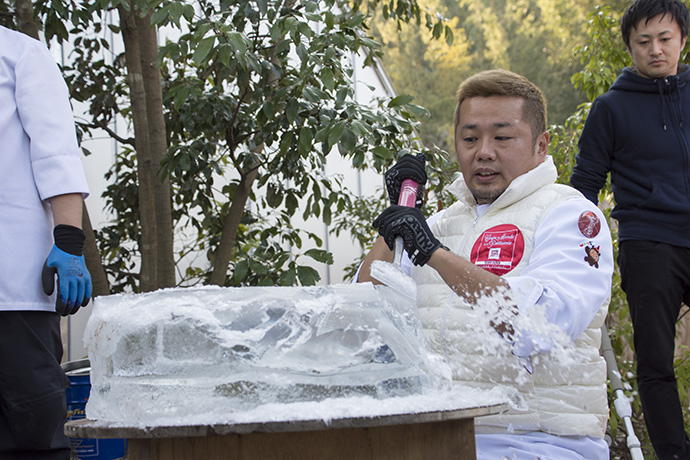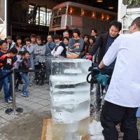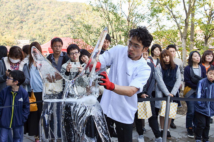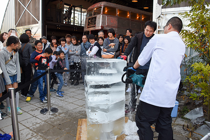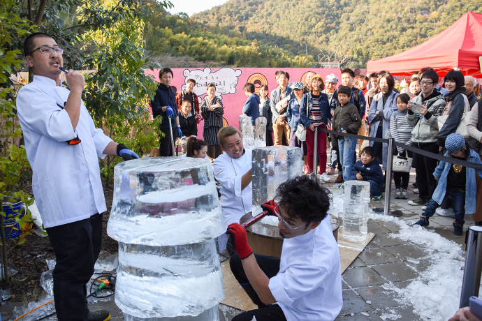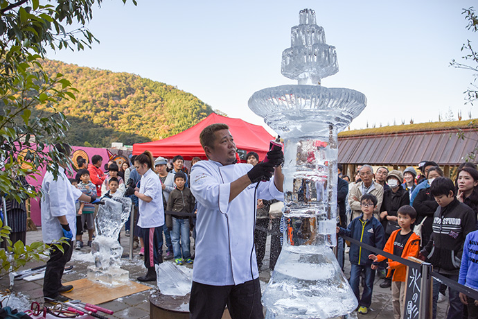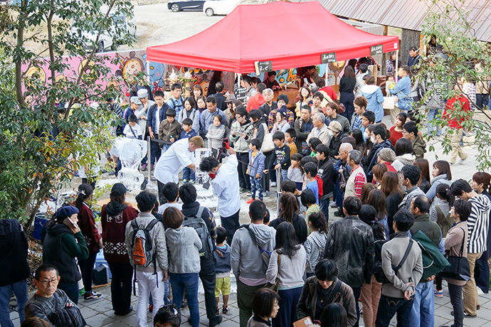 「たいまつフェス2017」3日目は、氷彫刻や飴細工、オーガニックマルシェのほか、たねや農藝による「しめ縄づくり」のワークショップを開催。 ステージでは滋賀県出身のシンガーソングライター真依子さんのLIVEが行われ、たくさんのお客さまが聴きに来られました。 この3日間は天気に恵まれ、おかげさまで大盛況に終わりました。 もうしばらく、敷地内にはこのまま「たいまつ」が設置されます。 大きなたいまつをぜひお近くでご覧ください。