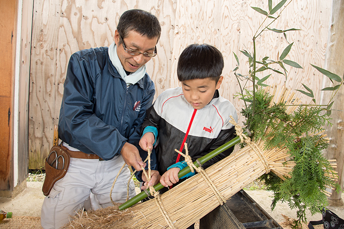 先生や農藝スタッフが手伝いながら結んでいきます。