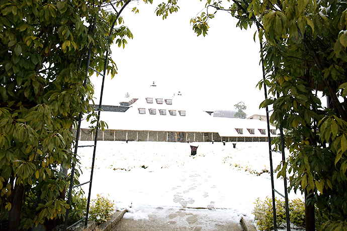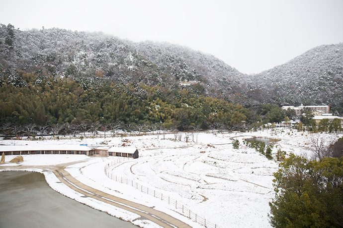 例年より少し早かったように感じる初雪。雪が降るとまた違った景色が広がるのもラ コリーナの魅力です。