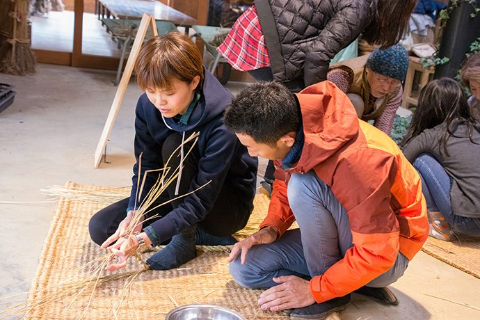「だんだんと先細りしていくので、藁を足しながら編んでください」