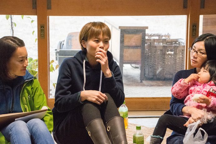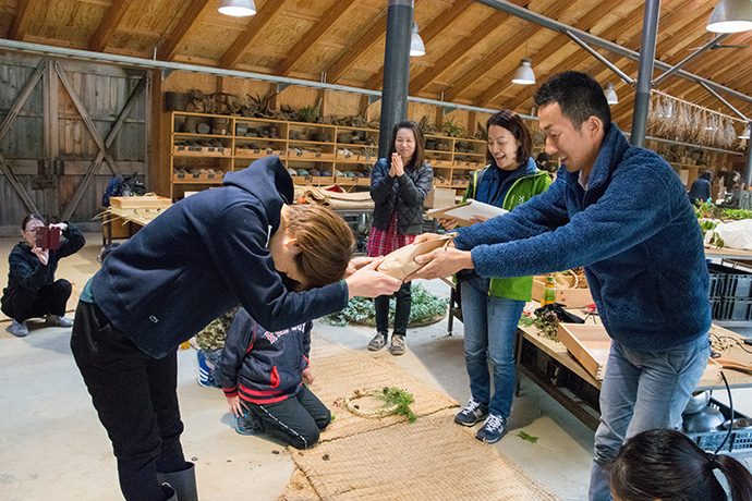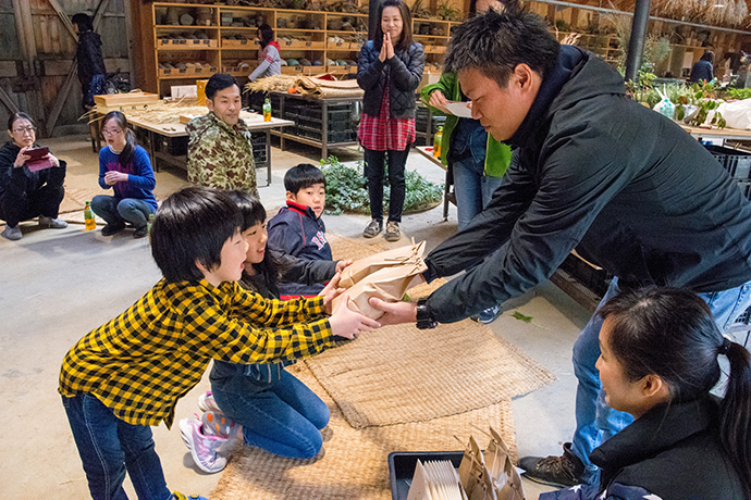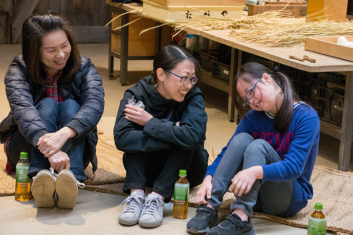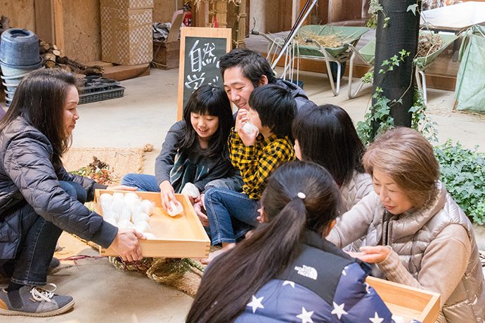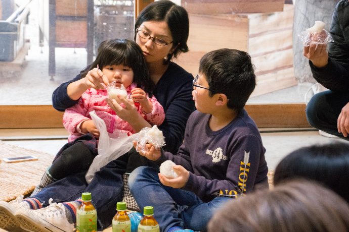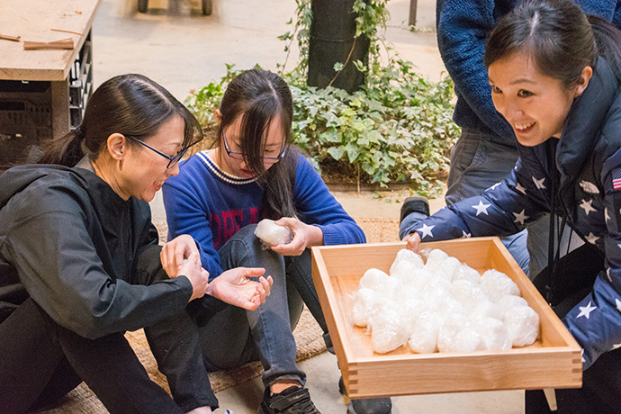 みなさんがしめ縄を作っている間に農藝のお母さんたちが握ってくれました。」