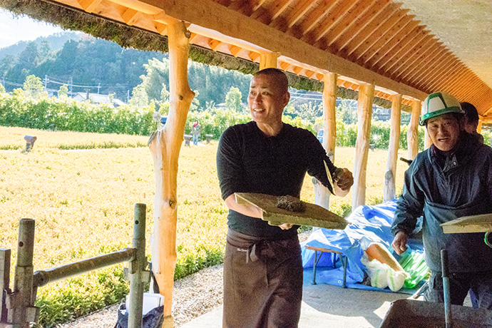 今回は営業中ということもあり、職人さんを中心に数人の従業員とたねやグループCEOの山本が加わっての作業となりました。