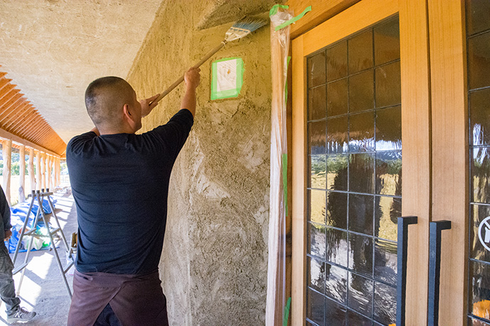 仕上げは土を塗ったところをホウキで削り風合いを出します。