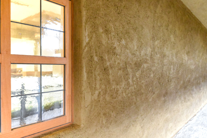 年月とともに土壁が削れ下地が見えてきたので、年末の大掃除ならぬ塗り直しを行いました。
