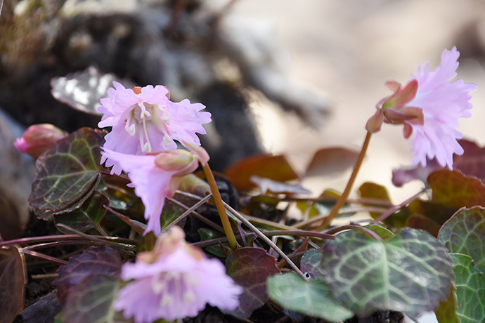 他にも、ピンクのひらひらとした花びらを持つ「姫イワウチワ」は、本当にお姫様のように可憐な雰囲気をまとっています。葉っぱがうちわのような形をしていることから、この名前がついたとか。