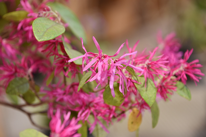満開の赤い花を咲かせている「トキワマンサク」は、よーく見るととても特徴的な花びらをしています。