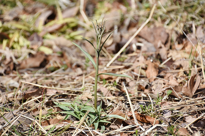 たねや農藝内の路地には、まだまだ冷たい風が吹いています。 ようやく新芽が顔を出した「ヨモギ」や花を咲かせる前の「バイモユリ」もどこか寒そうな様子。
