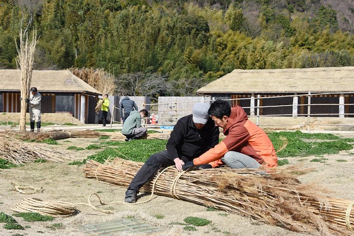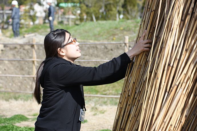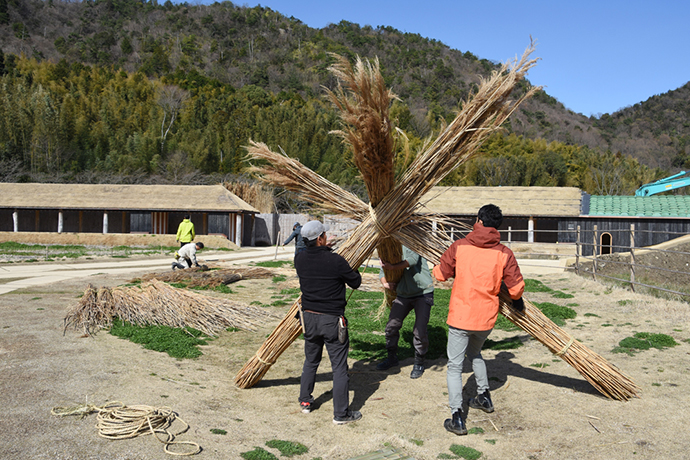 つくり方はとってもシンプル。ヨシを縄で束ねて立てかけるだけで、中は空洞になっています。