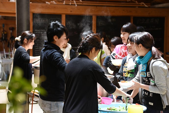汗を流した後、緑に囲まれて食べる炊き出しのご飯は本当に美味しかったです。