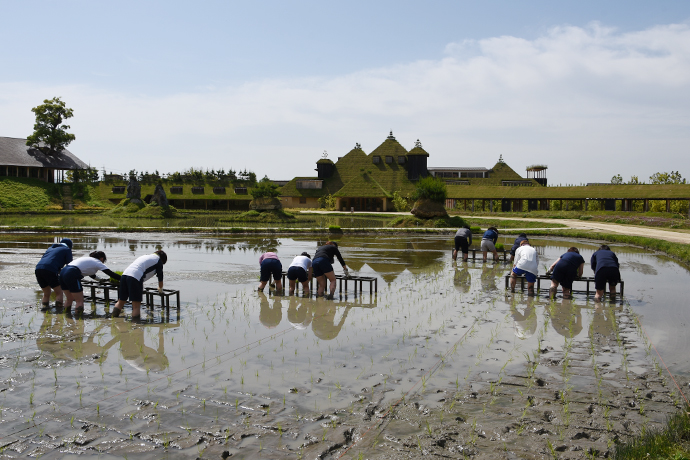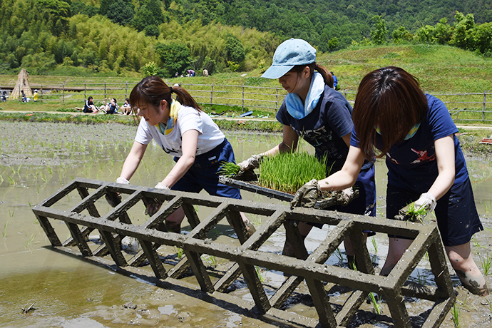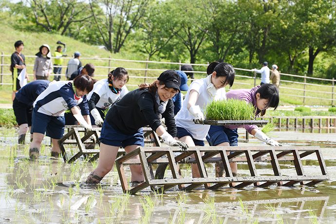最高気温28度の晴天となった5月25日、ラコリーナ近江八幡にて今年2回目の田植えが行われました。