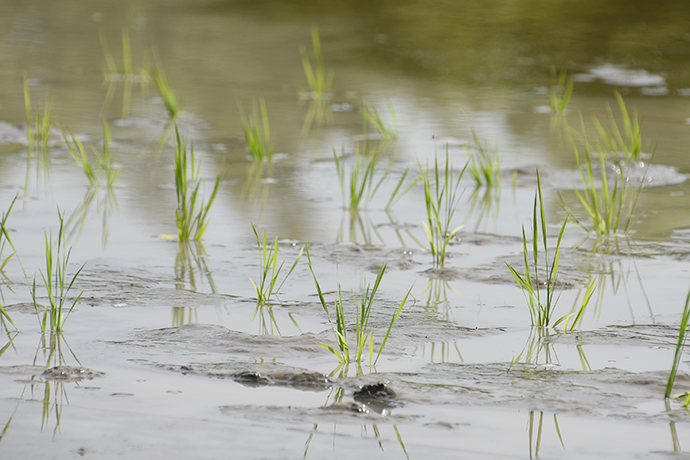 子どもの頃、泥遊びが大好きだった私は躊躇なく田んぼに足を入れました。