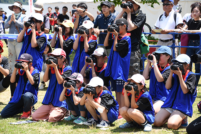 スタートの号令とともに、水しぶきを上げて琵琶湖に入っていく選手を前に必死でシャッターを切ります。