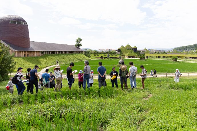 The morning of the day after, we attended a presentation about the paddy field cultivation conducted by a La Collina’s employee who was born in a rural area: he told us about his feeling of surprise knowing that only few visitors know about the puddy field practices even though it is heavily spread all across Japan. This state of feelings is the driver of La Collina’s mission about activities of environmental education and promotion of the specific territory composed by forest, water and humans, which must interconnect each other. La Collina represents the elements which connect all nature and humans. This can be perceived just by having a tour of its activities and also, of course, eating the tasty gelato which is made by organic ingredients that come from this land. (和訳) 2日目(7月8日)の午前中には、たねや農藝の方にラ コリーナの水田をご案内いただきました。彼は農村出身であり、水田や米のことについて自分では当たり前に思っていたとのことですが、日本には水田が非常に多くあるにもかかわらずラ コリーナを訪れる人の多くが米づくりについてあまり知らないことに驚く、と語ってくれました。このことは、ラ コリーナが環境教育や森里海連環による地域づくりの推進に重要な役割を担っていくであろうことを示していると思います。ラ コ リーナは自然と人のかかわりのすべての要素を象徴しているのです。ラ コリーナやその周辺を舞台としたツアーへの参加、そしてもちろん、地域産の有機栽培農産物を原料としたおいしいお菓子を食べることで、これらのことを体感できると思います。
