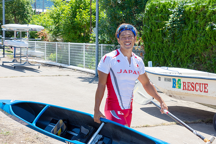 カヌー競技の中でも私が取り組むのは「カヌースプリント カナディアン」といって、複数の艇が一斉にスタートしてレーンを進み、着順を競うものです。片膝立ちになり、パドルでこいで前に進んでいるだけのように見えますが、実は膝を突き出すような形で全身を使って前に滑らせ、進んでいるんです。 自分でこいで水を切り裂いていく、この早いスピードが一番の魅力です。 もちろん勝負なので負けた時は悔しいですし、勝った時はすごく嬉しいですし、それも魅力のひとつなのかな。勝ち負けにしっかりこだわっていくこと。これが自分を成長させることにつながっていると思います。