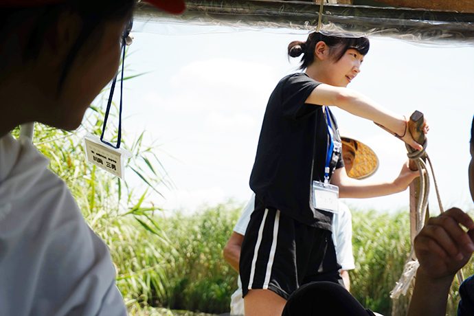 滋賀キャンプ全体を通して、参加者は3日間で5つの地域学習に参加します。まちづくり、漁業、農業、水郷めぐり、ブランディング、障害者福祉、古民家再生など様々なテーマを提供しました。現場での体験学習はもちろん、想いを持ち取り組んでいる地域アクターとの対話を通して、滋賀県・近江八幡がもつ資源・価値・魅力をそれぞれが見出し、吸収していました。以下は、地域学習に参加した中高生の感想の抜粋です。 「お祭りは姿を変えて世代を超えて、千年、四百年近く受け継がれているという事実を知り、伝統産業が廃れていく中でもしっかり受け継がなければならないと思っている人々の熱い想いが伝わった。八幡堀の説明を聞いた後にもう一度見ると、『再生運動』を行なった地域の人々の団結力を感じた。」