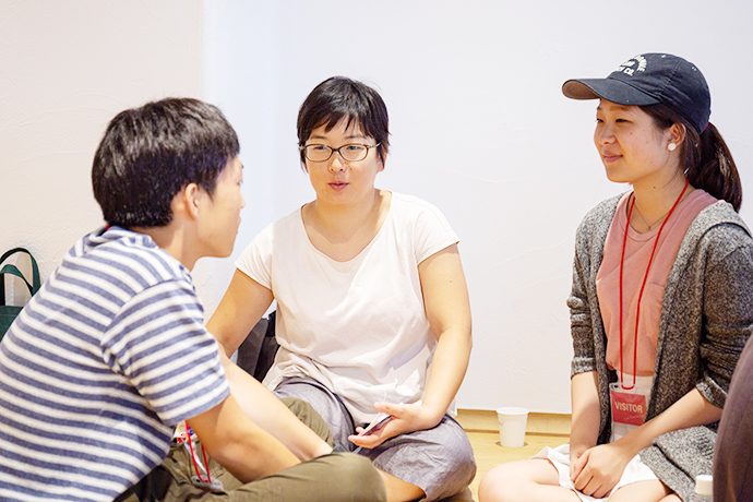 キャンプ最終日には、ラコリーナのフロアをお借りして「市民会議」を行いました。市民会議は参加者(中高生)と大学生 、学校の先生 、地域の方々など、世代と領域を超えた対話を生み出す場です。「共感と応援」をテーマに 、中高生がキャンプを通して作り上げたマイプロジェクトの発表と洗練を中心に行いました 。