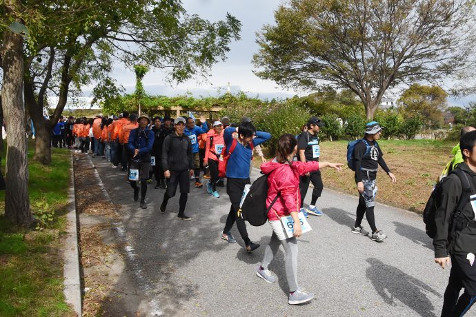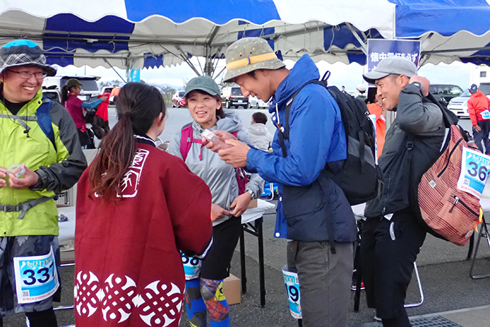 チェックポイントから歩行者を送り出す時には、「いってらっしゃい」「気をつけて」「がんばって」と声を掛け、無事のゴールを祈るばかりでした。たねやグループからエントリーした7人も笑顔で次のチャックポイントへと出発していきました。