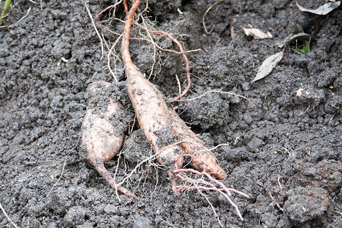 芋は土の中で色々な方向に育っていて、お芋を傷つけないよう慎重に掘り進めるのがとても難しかったです。