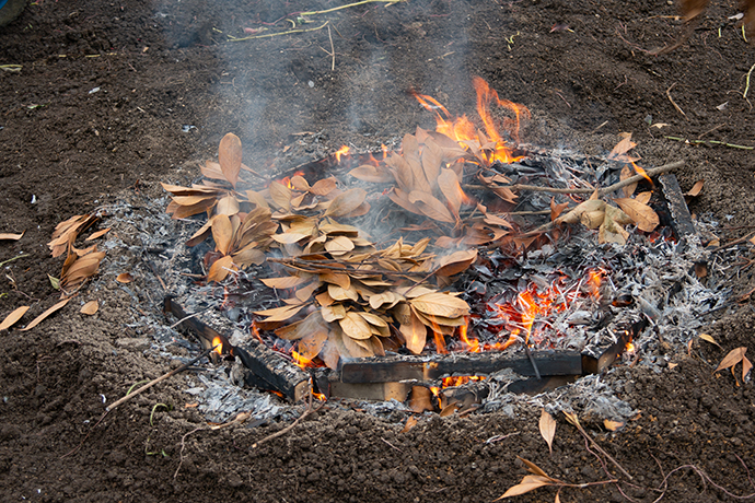 芋掘りの後はお楽しみの焼き芋です。落ち葉を燃やして本格的に!