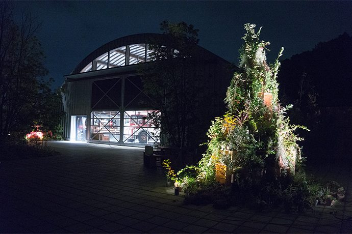 日が暮れる頃にライトアップ。ラ コリーナらしく自然に溶け込むような空間が広がります。