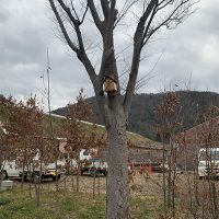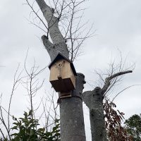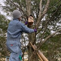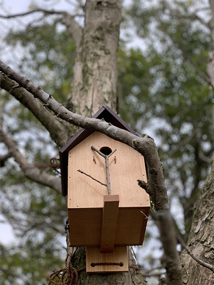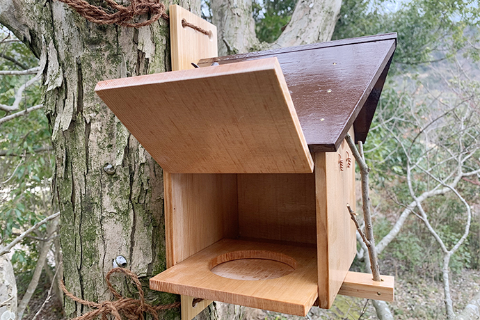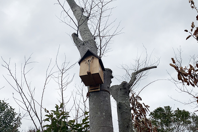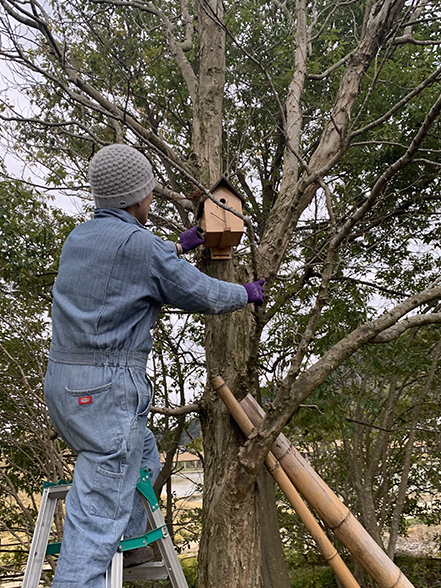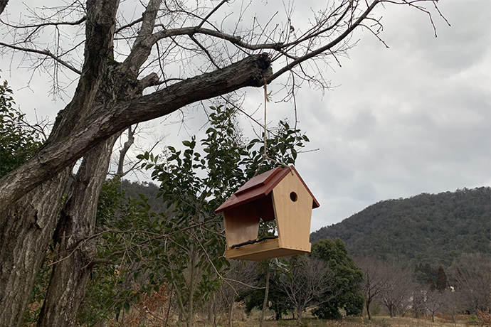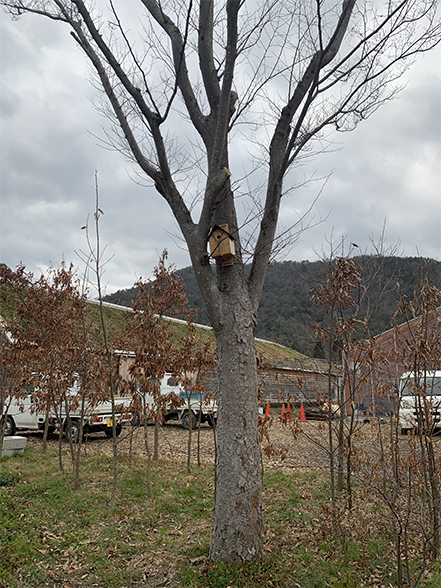 まだ風も冷たい2月下旬、たねや農藝の菜園にバードハウスを設置しました。畑をかこむ木々に取りつけたスタッフ手作りのハウスは全部で4つ。ラ コリーナではセグロセキレイやカワラヒワといった野鳥を見かけますが、このバードハウスに来てほしいのはシジュウカラ。スズメほどの大きさで平地や山野に棲息する身近な小鳥です。 菜園では昨秋サツマイモがひどい虫害をうけました。土から掘り出すとあれもこれもボコボコと穴だらけ―――原因はコガネムシの幼虫でした。対策として今年は植えつけ時期を早めますが、土の中の幼虫までは手が出せません。 今年1月、ラ コリーナへ生物調査に来られた農研機構の方に教えていただいたのが“虫を食べる野鳥”を呼ぶ方法。 シジュウカラは春から夏にかけて卵を産み、ヒナを育てます。冬のあいだに木々の少し高い場所へバードハウスを設置すれば、巣穴を探す親鳥が見つけてくれるかもしれません。たとえ今年巣として使われなくても、強い雨風などをしのぐ場所になるでしょう。 ラ コリーナで初めてのバードハウス。これからどうなるか気長に見守りたいと思います。