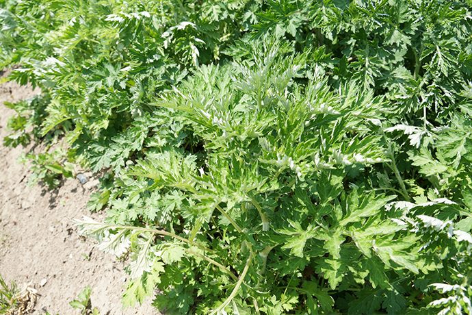 畑にこんもりと茂るヨモギは一見どれも同じように見えますが、じつは葉の形や茎の色がそれぞれ違います。香りもまた同じ。