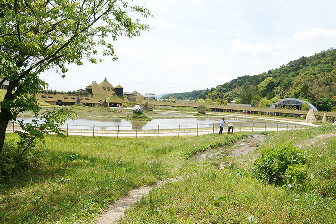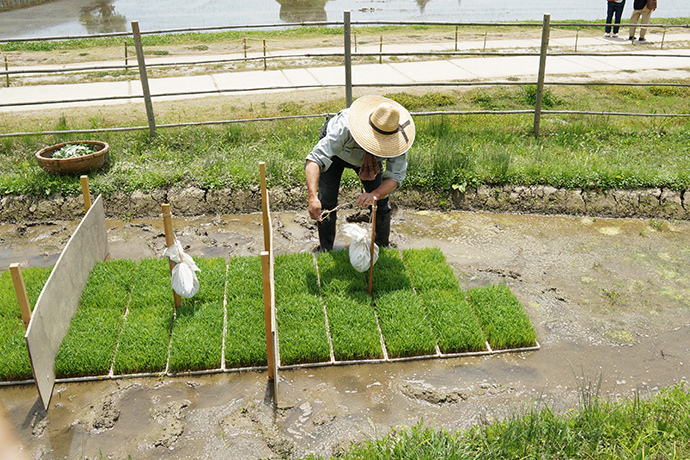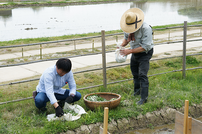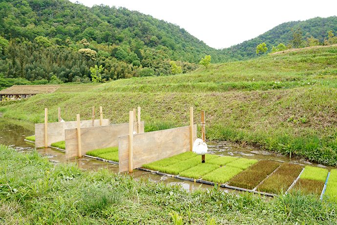 田植えを控えた5月下旬、稲を育てている棚田に農藝スタッフの姿がありました。
