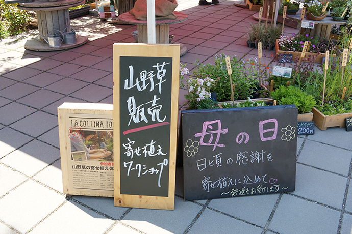 先月『母の日』にちなんで5月11日と12日の2日間、ラ コリーナ近江八幡のギフトショップ前でたねや農藝 愛四季苑(はしきえん)による『母の日 山野草寄せ植えワークショップ』を開催しました。 天気も良く、たくさんのお客様がご来店。 今回のワークショップは、山野草の販売と寄せ植えの体験。 山野草の寄せ植え体験に初めて参加してくださったお客様は、大阪からお越しでした。 「母はお花が好きなんです。きっと喜ぶと思ったので、山野草の寄せ植えを体験しました。」 お母様にプレゼントする為に気持ちを込めて丁寧に作っていらっしゃいました。 たねや農藝 愛四季苑(はしきえん)では、約500種類の山野草を育てています。山野草は、「お店の中でも季節を感じて欲しい」との思いを込めて、各店舗に季節の寄せ植えを毎週出荷しています。 山野草の寄せ植え体験は、ラ コリーナツアーで毎月開催しております。 普段の仕事や生活の中に、“自然を見て歩き、触れる”という体験を取り入れてみるのはいかがでしょうか。 皆さまのお越しをお待ちしております。 ラ コリーナツアーはこちら⇒http://www.taneya.jp/la_collina/tour_index.html