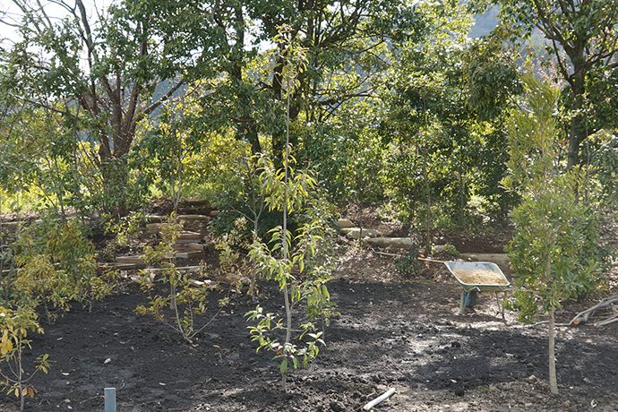 その落ち葉のさらに下、木々を支える土には琵琶湖に繁茂する水草を使った堆肥(たいひ)を滋賀県から分けていただき、Bosco全体に使いました。