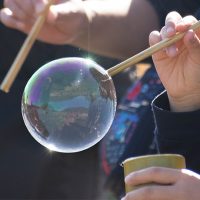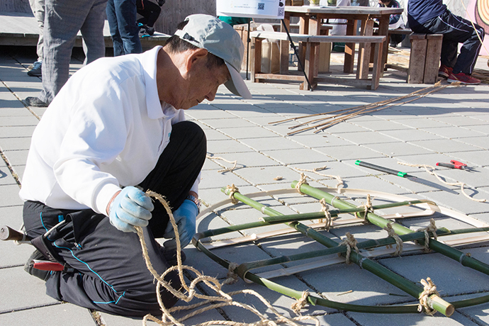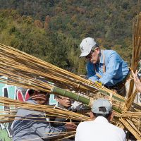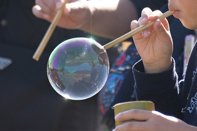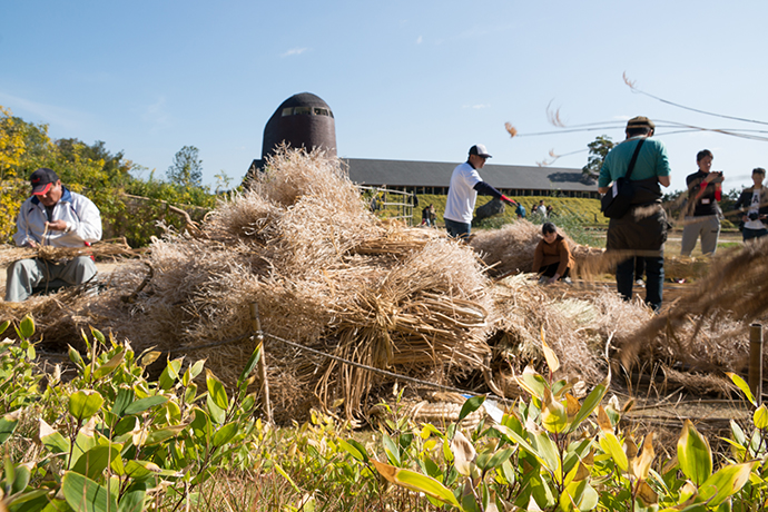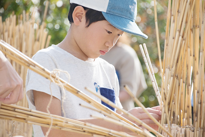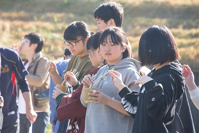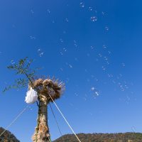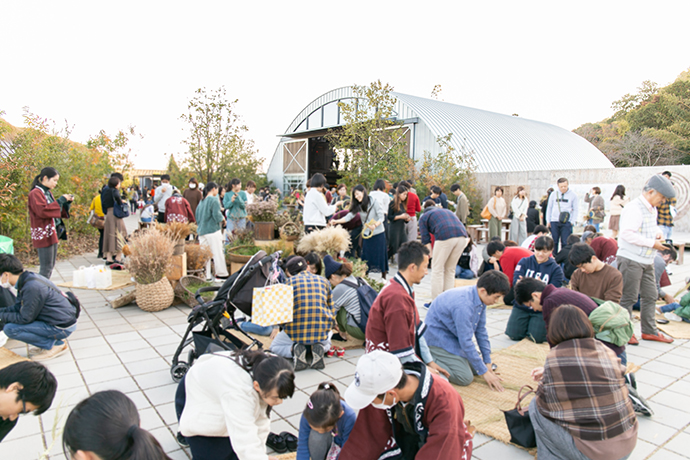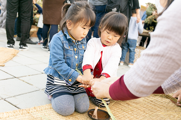 11月23日と24日の2日間、「たいまつフェス2019」を開催しました。 フェスに先駆け、11月中旬から近江八幡の各町の方々によりたいまつが設置されました。 フェス当日は、しめ縄ワークショップ、山野草販売でお客様に楽しんでいただけました。また、京都大学主催のシャボン玉イベントでは、ヨシを使ったストローで環境に優しいシャボン玉を吹いて青空を彩りました。地元の子ども達に松明を継承出来るよう開催したこどもたいまつ作り体験は、伝統文化に触れる時間となりました。