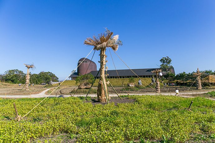 展示している5基のたいまつは、12月中旬まで展示し、解体した後は自然に還(かえ)します。 たいまつを通してみなさんに「結」を感じていただけたらと思います。