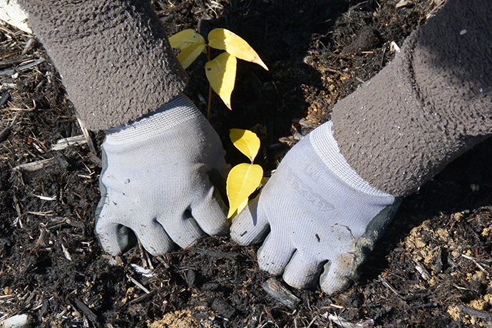 私たちの植樹方法は密植。「森」を作るために密植させ、あえて競争させています。 「自然」に任せることで、強い命のバトンが繋がれていきます。