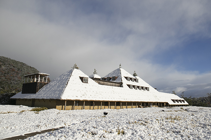 夏はグリーン、秋から冬にかけて茶色く冬支度してきた草屋根は真っ白く神秘的になりました。