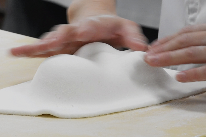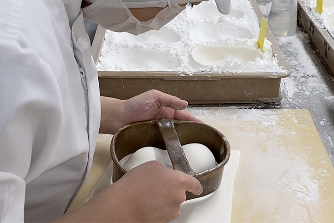 ■お多福さんの型押しの技術は新人さんでもできるものですか。 新人さんなら約1年間でできるようになります。 ただ、どんなベテランでも現状に満足せず、より良い型を作るように努めています。