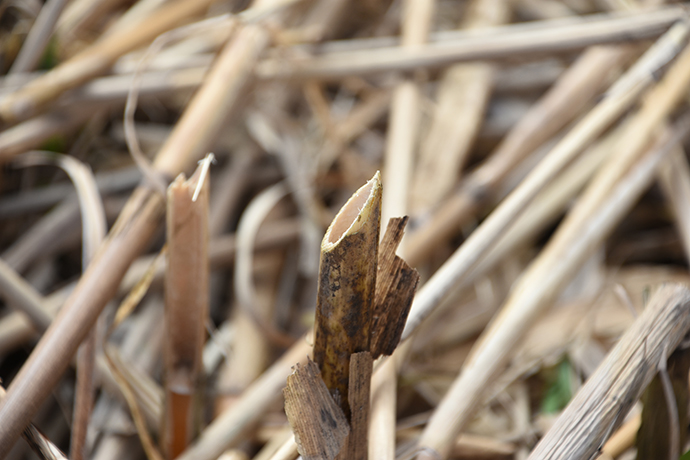 刈り取ったヨシの切り口は、踏んでしまうと、履いている長靴の底を突き破るほどの鋭さなのです。 刈られてもなお、長靴の底をつき通してしまう自然の力。びわ湖の力を感じた瞬間でした。