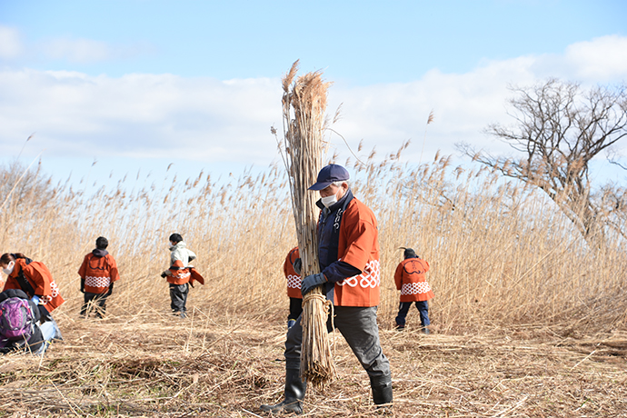 たねやグループでは毎年、北之庄沢でヨシ刈りを行っています。
