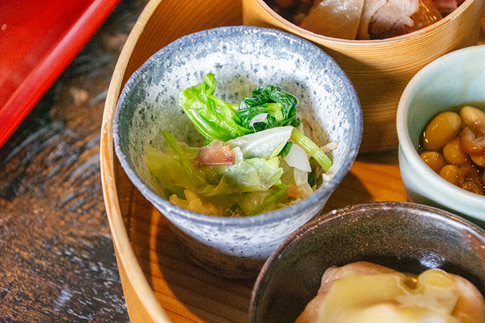 当店(たねや日牟禮茶屋)では故郷を感じる『おばんざい』を長年作り込んできました。 たねや・クラブハリエのお菓子同様、お客様には素材本来の味を楽しんでいただけるような食事メニューと調理方法を考えております。