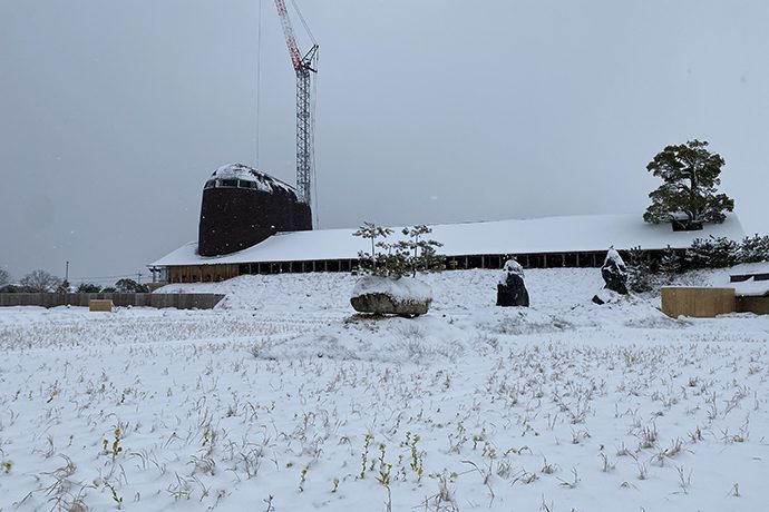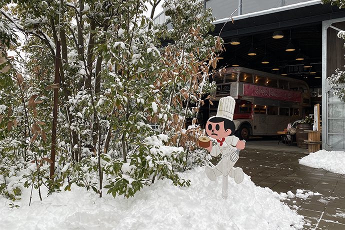 2022年1月14日、前日から冷たい風が吹き、時折雪が舞っていましたが朝には一面雪景色に変わっていました。ラ コリーナ近江八幡のスタッフはいつもより早く出勤し、朝から雪かきをしました。