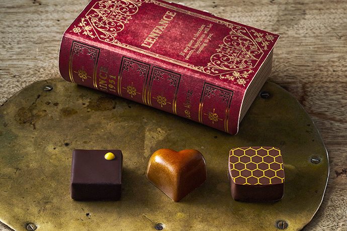 2021年フランスで行われた洋菓子職人の世界大会「クープ・デュ・モンド・ドゥ・ラ・パティスリー2021」でチョコレート部門の日本代表として出場した、クラブハリエのシェフショコラティエ原田誠也。新作「L'ENFANCE(ランファンス)」にはパッションフルーツ・アプリコット・はちみつの3種が入っています。 チョコレートの世界に足を踏み入れた当時、刺激を受けた素材や組み合わせを集めた作品です。