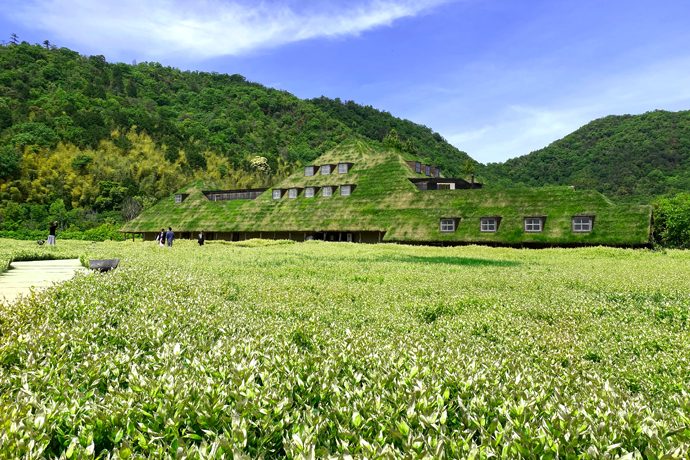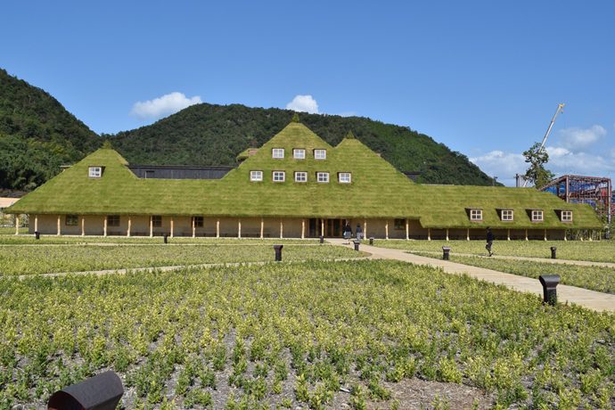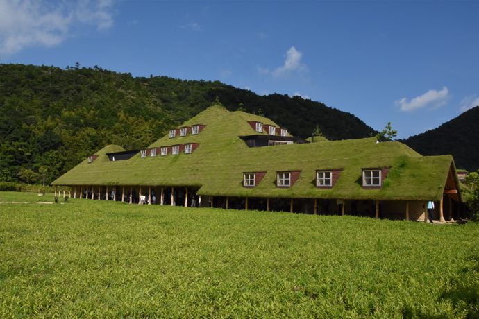 2017年5月 地面の土もすっかり見えなくなりました。緑一色のメインショップと“おかめ笹”の景色は夏限定。