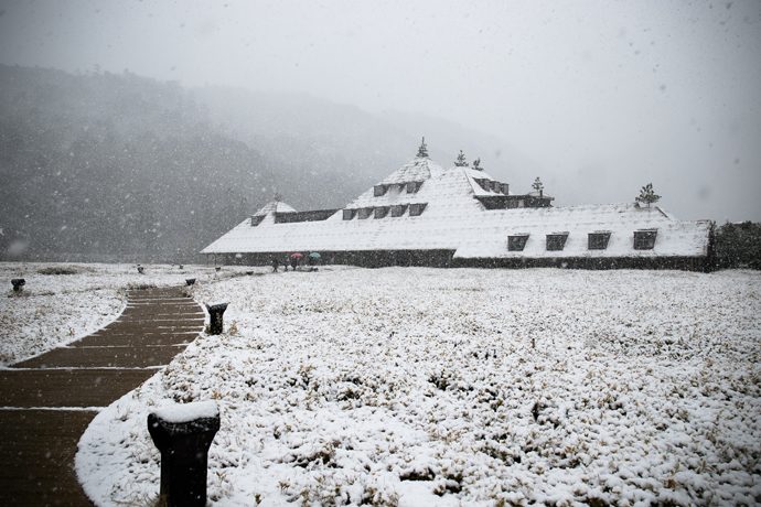 2020年2月 “おかめ笹”が成長しても大雪の日は要注意。背の高いものは雪の重みで折れてしまうことがあります。