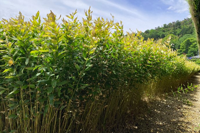 メインショップオープン前年の2014年に植え、最初は10数cmだった“おかめ笹”も今では高いもので1mを超えるようになりました。