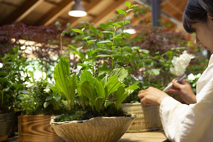 キャンディファームでは、百貨店などの地下フロアでも季節を感じていただけるよう季節の山野草を店舗に届けたり、一部の店舗では寄せ植えの販売をしています。