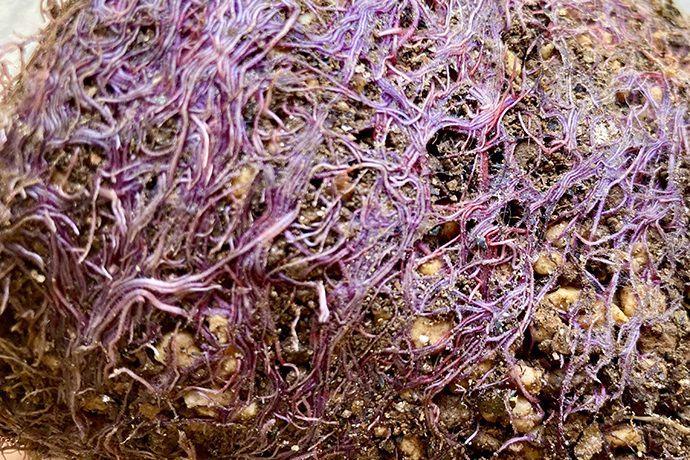 そんなヤブキリの好きなムラサキのお花の根っこを見てみると、なんともきれいな紫色をしています。