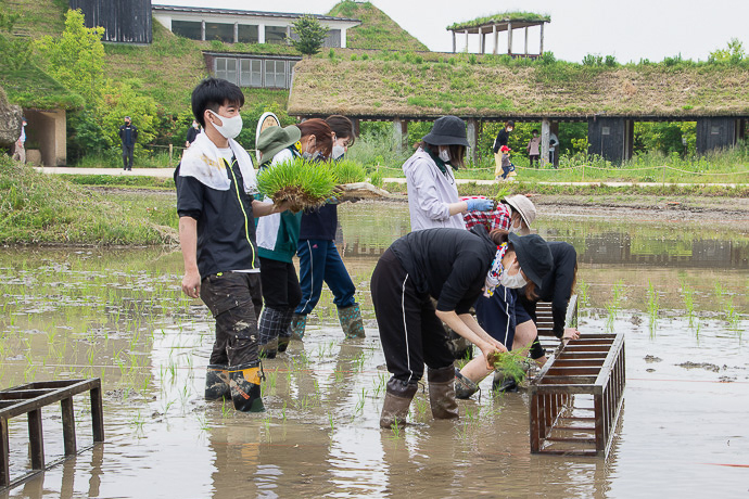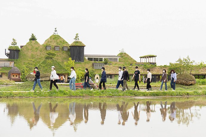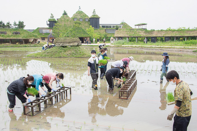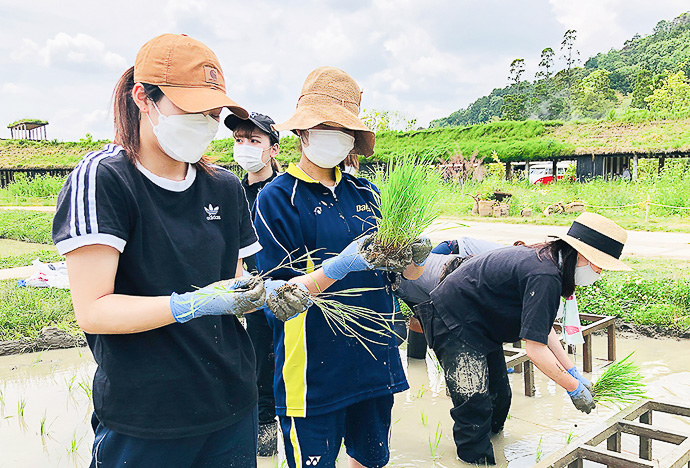 ラ コリーナは「自然に学ぶ」がコンセプト。 お菓子と自然は深く繋がっています。 お米や小麦、小豆などの自然の恵みがなければ、私たちはお菓子を作ることができません。 農作物を作る大切さを知り、原材料やお菓子に対する基本姿勢を身に着けるために、スタッフによる田植えなどの「自然に学ぶ」取り組みを行っています。 そのため、たくさん自然に触れてラ コリーナの特徴を学べる内容になるよう、工夫しました。