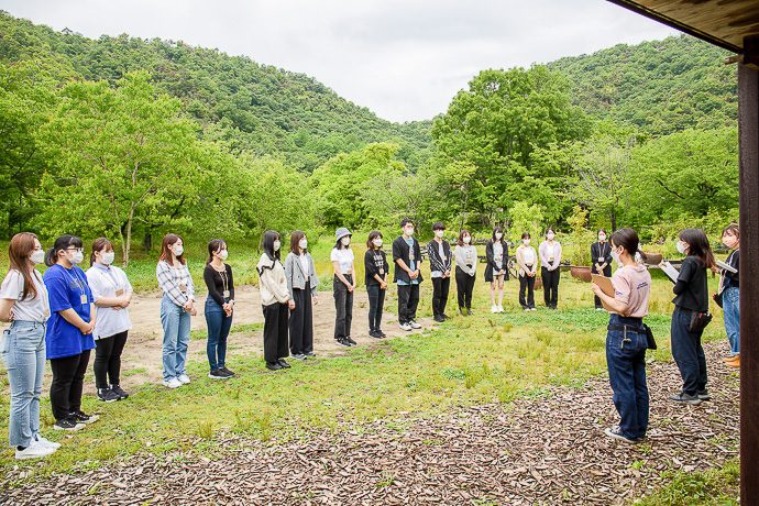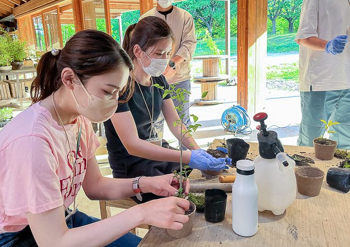 ラ コリーナはたねや クラブハリエの取り組みや目指すものを発信する場所。 今回の研修の中で、実際に食べたお菓子や自然に触れて感じた事、身につけた知識を忘れずに、ぜひお客さまやご家族にも魅力を伝えてもらいたいです。